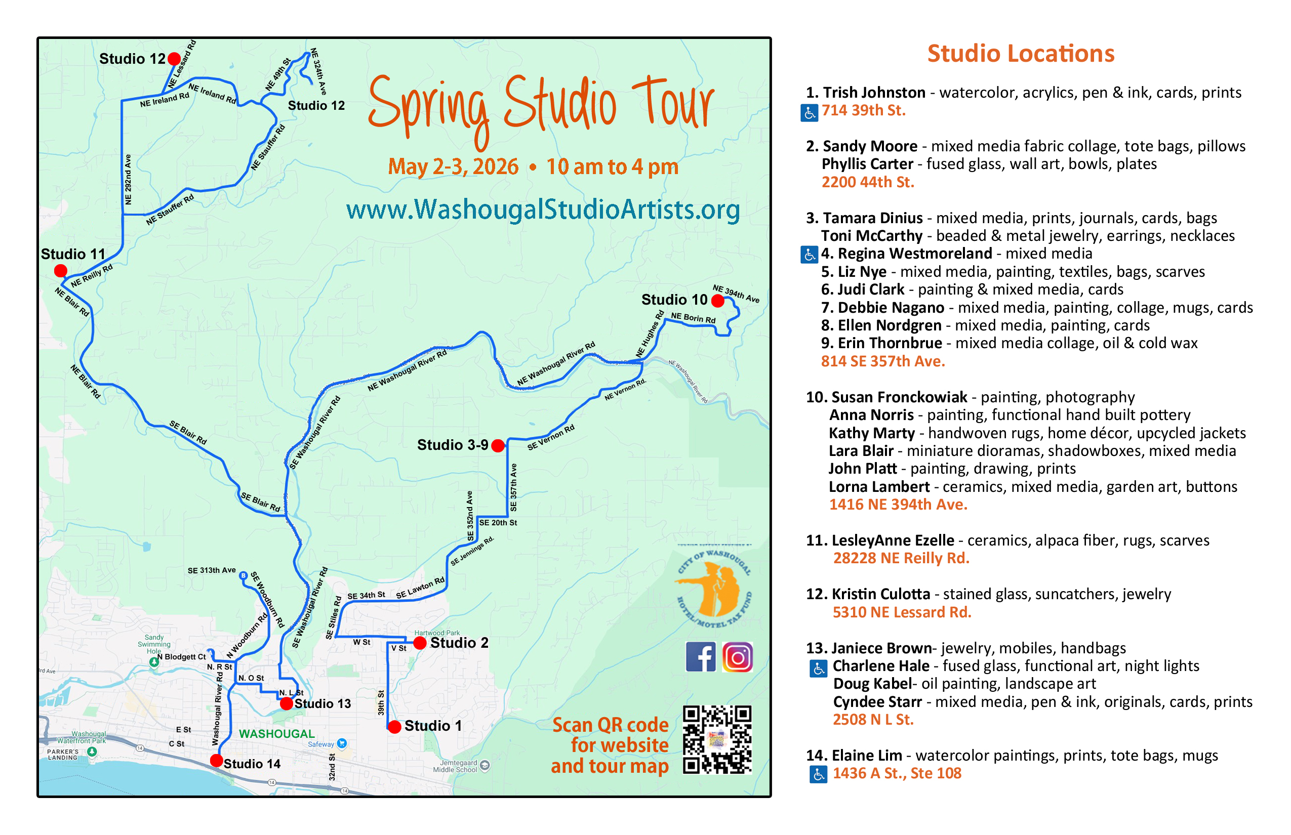 The Washougal Studio Artists Tour is your chance to visit local studios, see artists at work, and discover original creations in glass, textiles, bronze, painting, jewelry, and more—each piece available directly from the artist. This highly-anticipated event is a must-see.